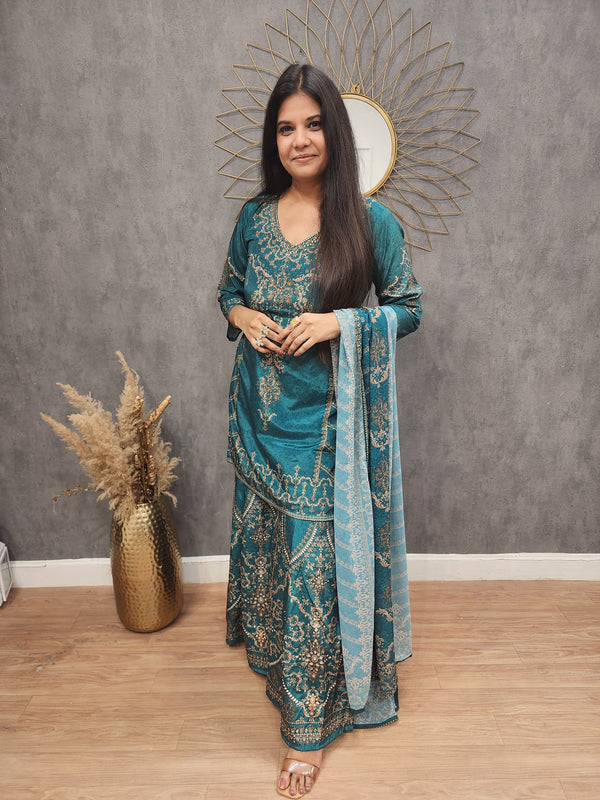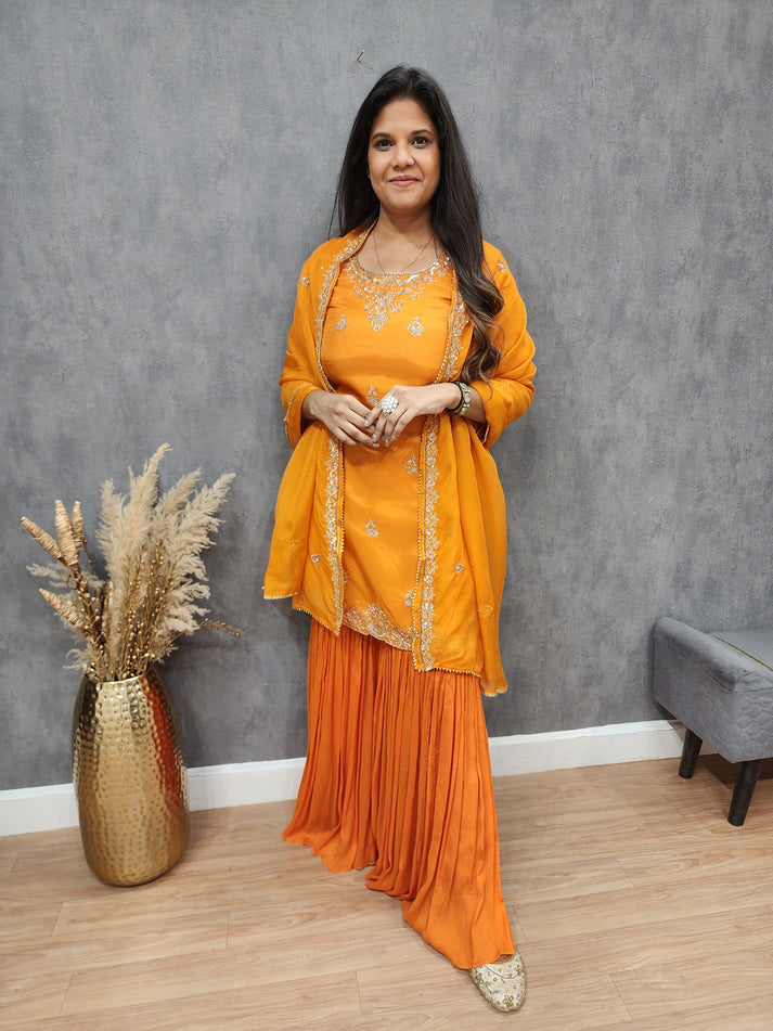 Chand yellow foil mirror sharara suit (seperate sleeves available)