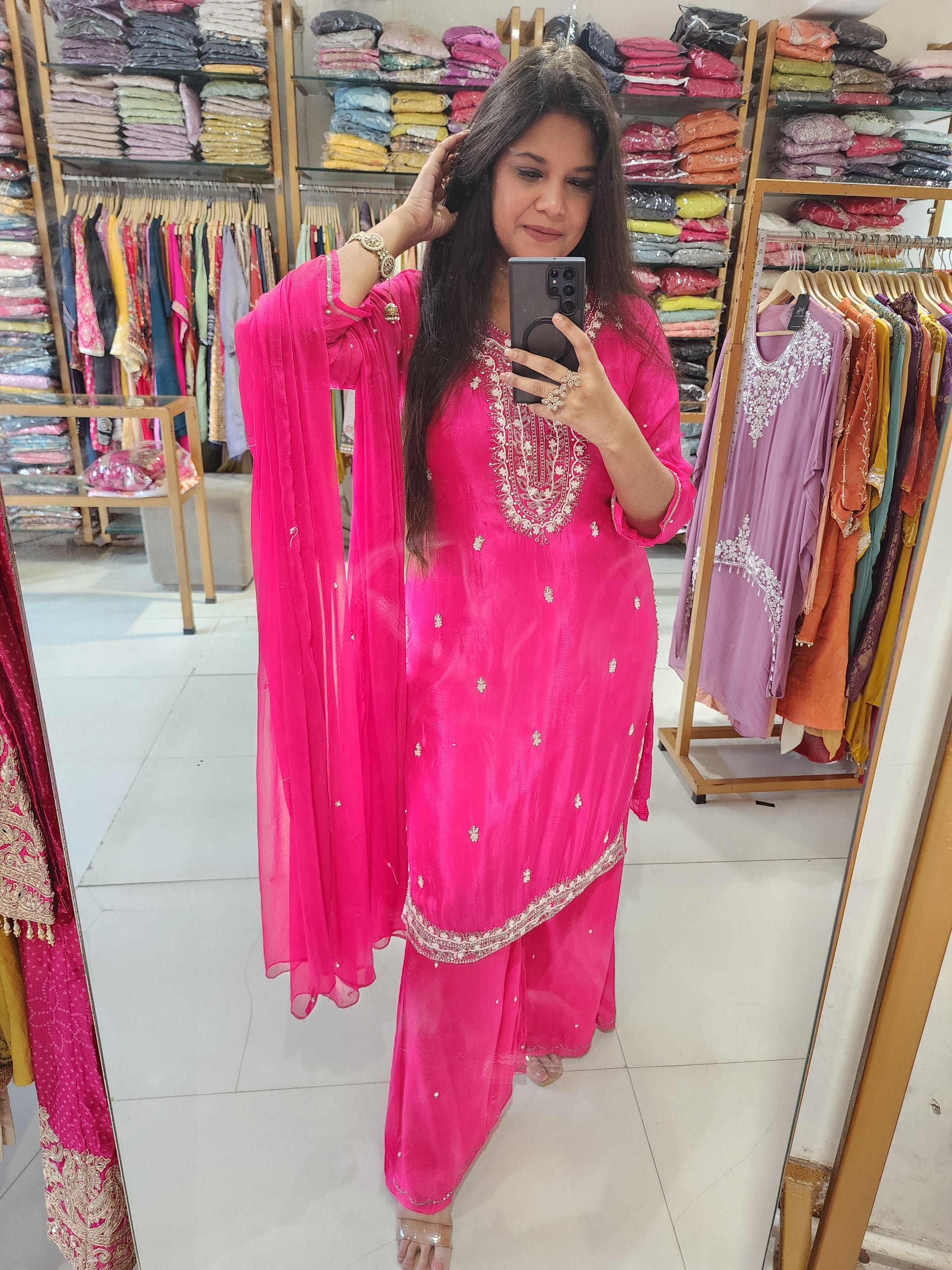 Hotpink Embroided sharara suit