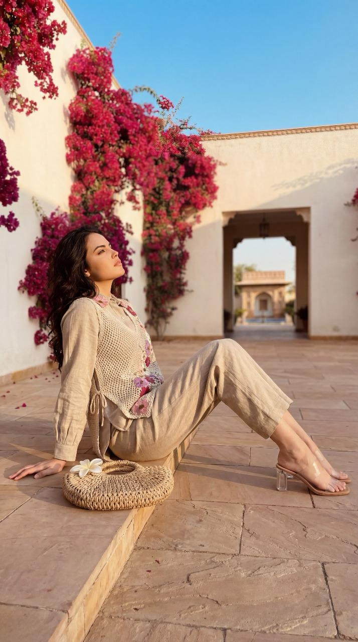 Jute cotton embroided co-ord set